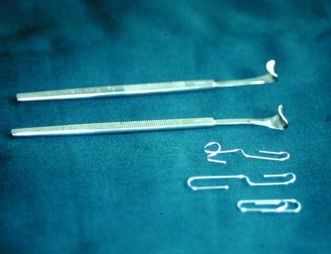- Figure 2. Desmarre retractors and bent paper clip retracor