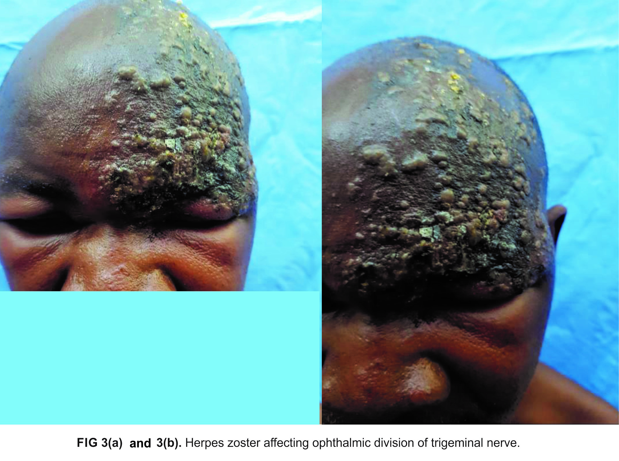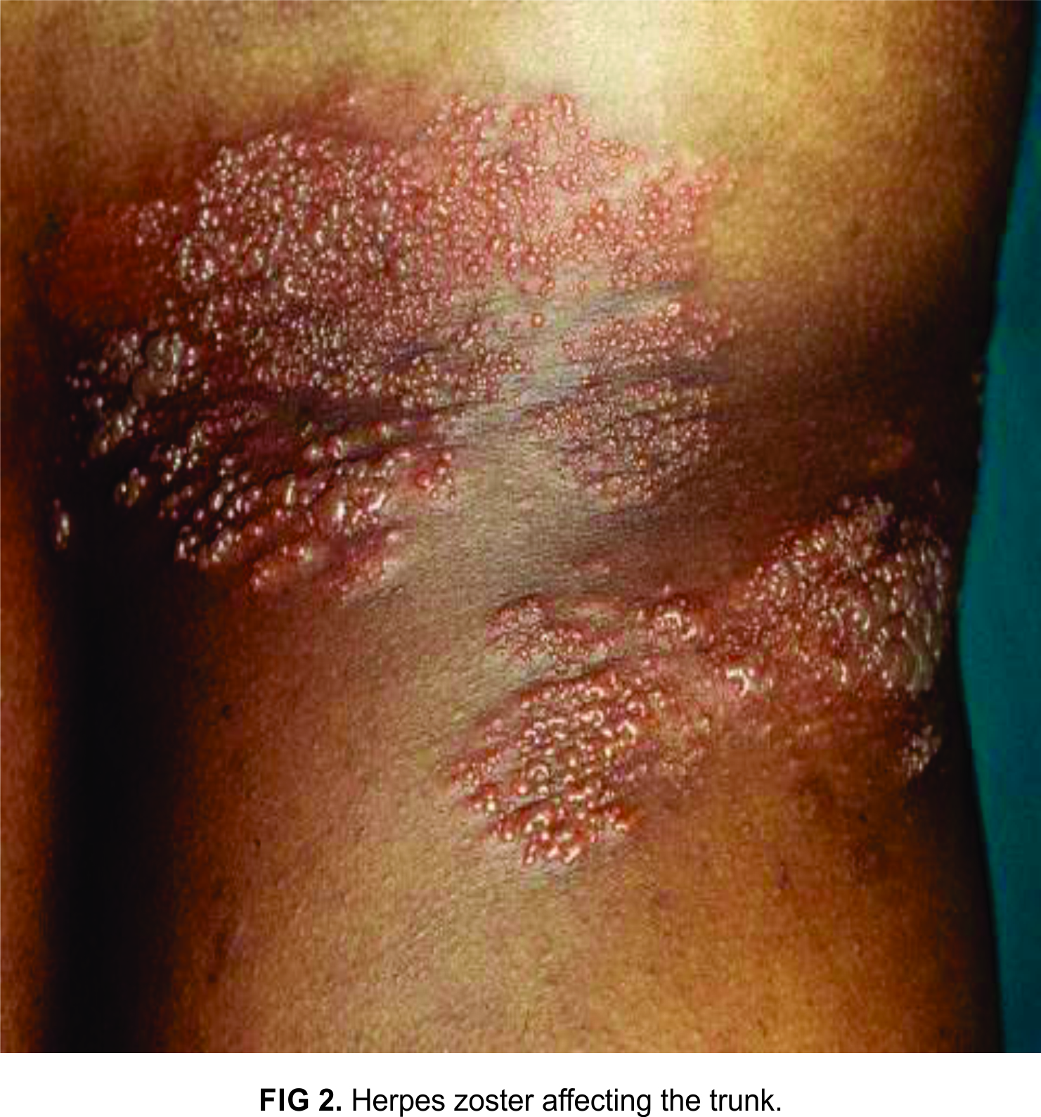 Herpes zoster or Shingles is caused by varicella-zoster virus (VZV), the same virus that causes chicken-pox (varicella). Primary infection with varicella-zoster virus causes chicken-pox (varicella), then the virus persists in nerve ganglia of sensory but rarely motor nerves, in a latent stage. If the virus gets reactivated it causes herpes zoster, which presents as painful vesicles following a dermatome. It is more common in the elderly and the immunocompromised. Herpes zoster is a common skin and mucous membrane disease caused by reactivation of latent varicella zoster virus, which had lodged previously in nerve ganglia. Trigeminal nerve nuclei and thoracic spinal ganglia are the most commonly affected. Reactivation of latent varicella-zoster virus can be triggered by old age, that is why herpes zoster is common in the elderly, above 60 years of age. This is due to age related decline in specific cell mediated immune response to VZV. Other triggering factors are malignancies malnutrition, emotional stress, physical trauma, chronic diseases like diabetes mellitus and immunosuppression from drugs and HIV.¹,²